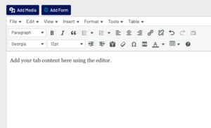 Pages can have responsive tabs tables added to them, along with a standard WYSIWYG editor.